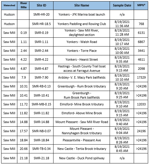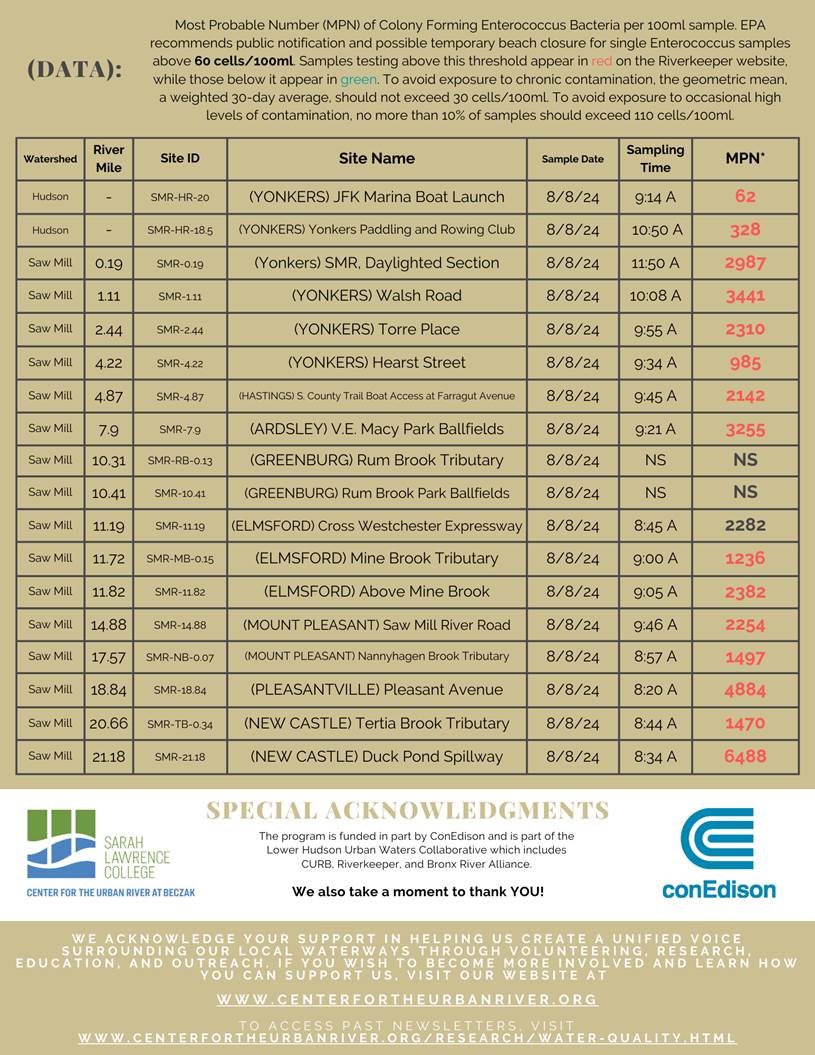 - 8/19 - Saw Mill River and Hudson River (Data Only)