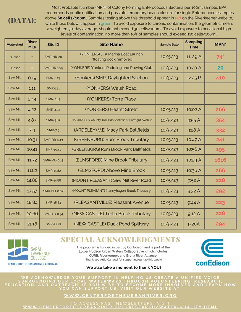 If you are interested in joining our sampling efforts as a volunteer, let us know by emailing Educator & Water Quality Specialist, Katie Lamboy Roman at Klamboy@sarahlawrence.edu or calling (914) 323-6273.